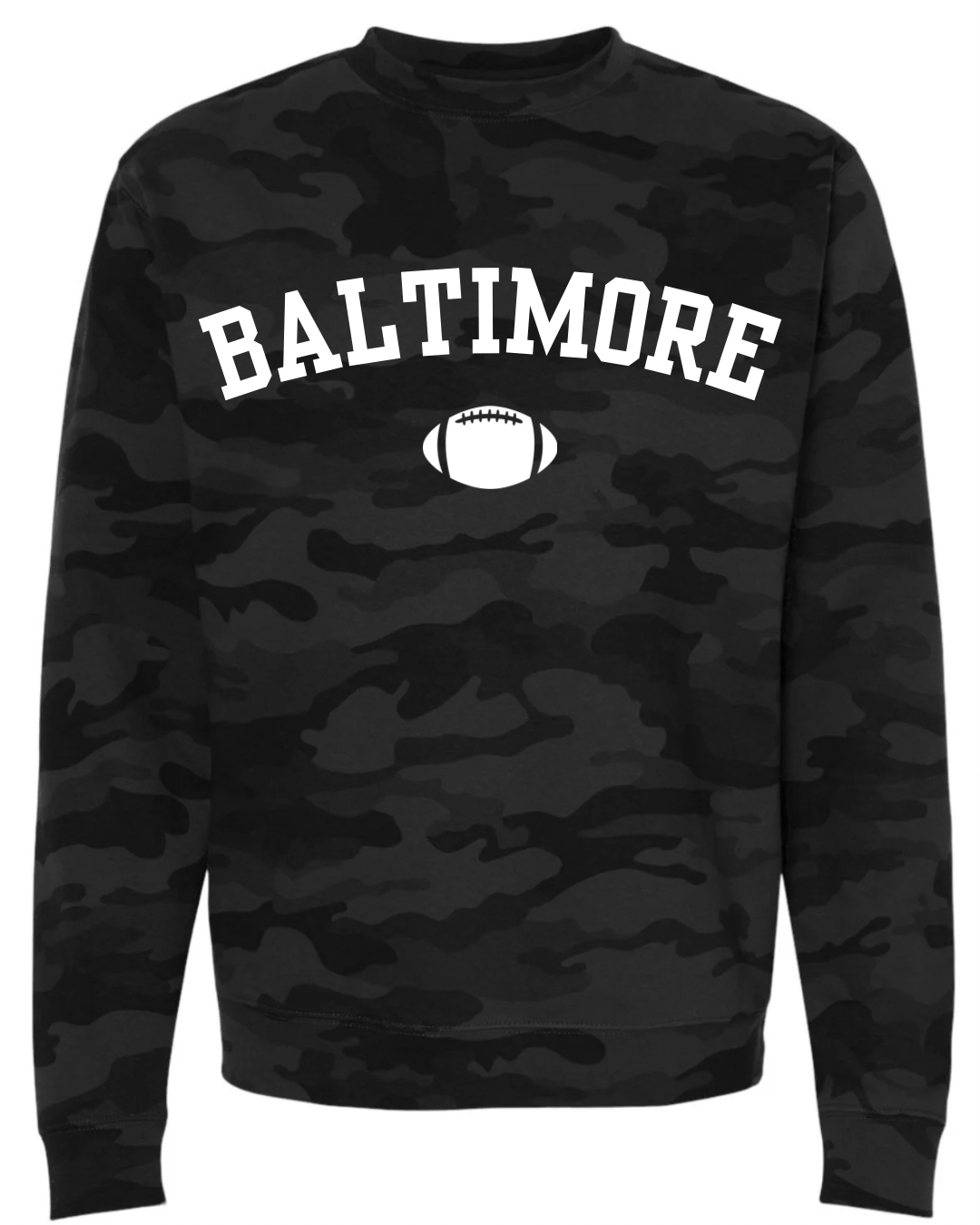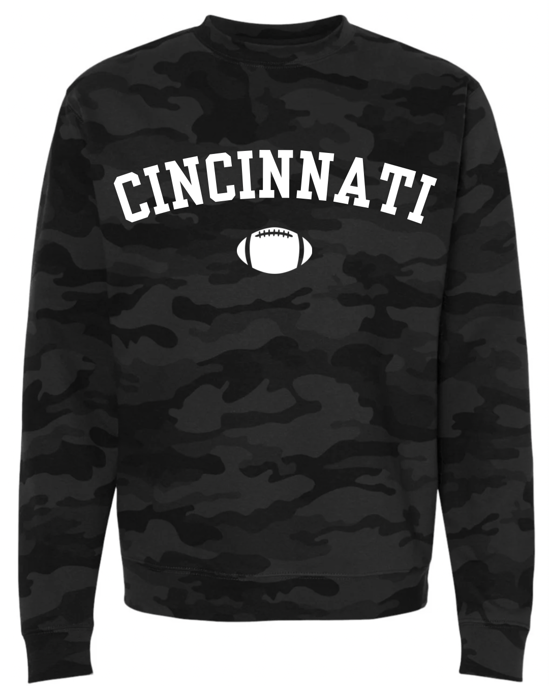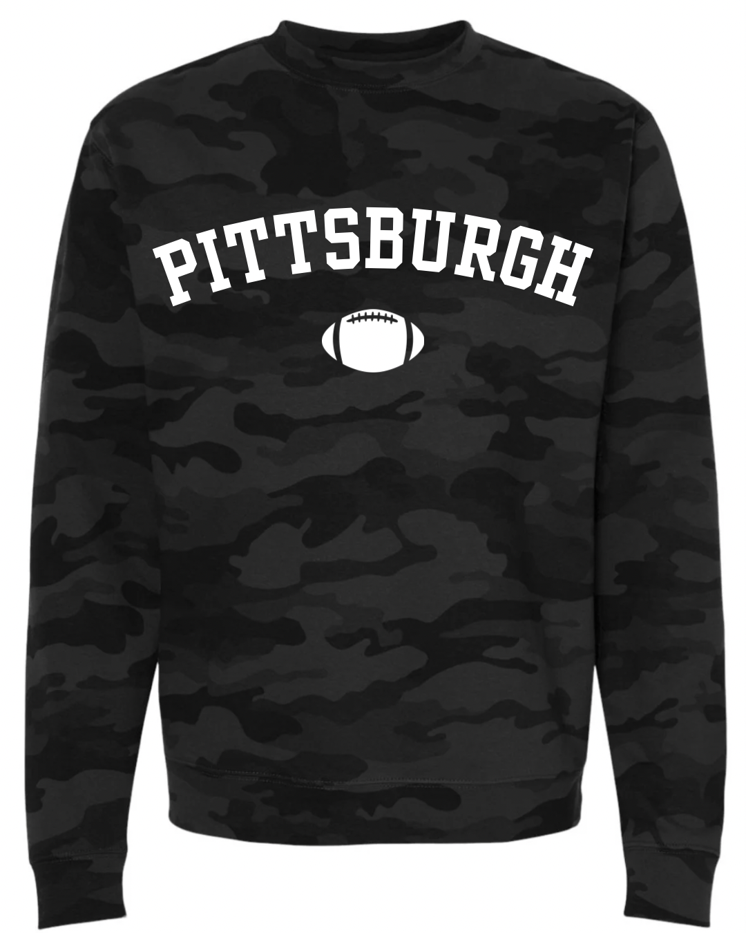 Rep your city in style with our Black Camo Crewneck — the ultimate game day essential. This mid-weight sweatshirt features a sleek black camo pattern and bold city lettering, making it the perfect piece to show off your hometown pride. Whether you’re at the stadium, tailgating, or keeping it casual, the classic crewneck fit is comfortable, durable, and ready for all four quarters.