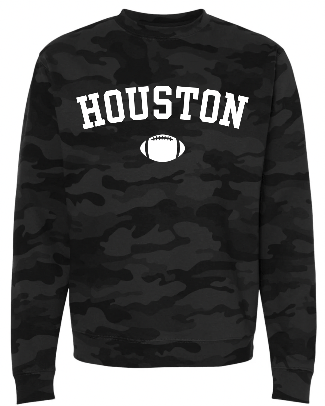 Rep your city in style with our Black Camo Crewneck — the ultimate game day essential. This mid-weight sweatshirt features a sleek black camo pattern and bold city lettering, making it the perfect piece to show off your hometown pride. Whether you’re at the stadium, tailgating, or keeping it casual, the classic crewneck fit is comfortable, durable, and ready for all four quarters.