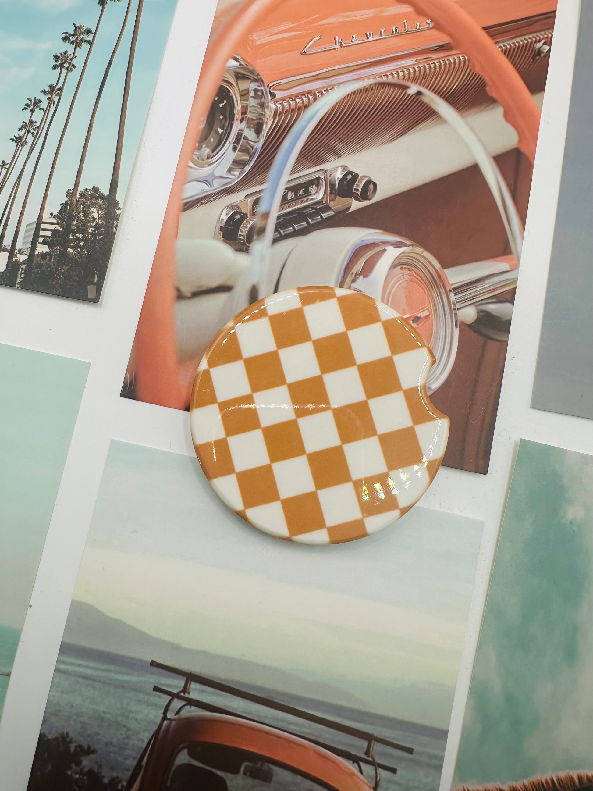These absorbent coasters fit perfectly in most standard car cup holders to catch drips, spills, and condensation. Made from durable ceramic with a stylish design, they're both functional and fun—just pop them in and enjoy a cleaner, more personalized ride.