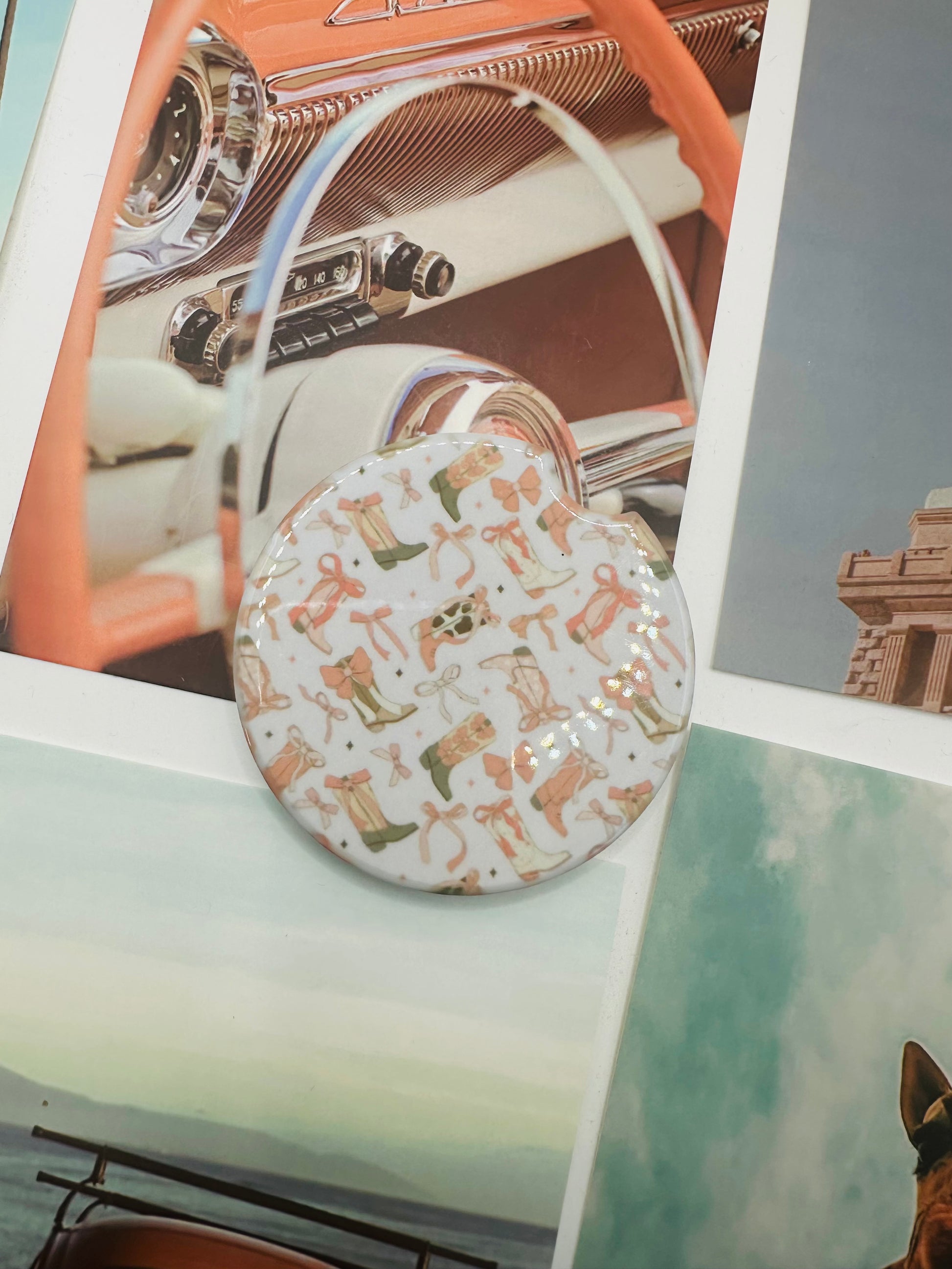 These absorbent coasters fit perfectly in most standard car cup holders to catch drips, spills, and condensation. Made from durable ceramic with a stylish design, they're both functional and fun—just pop them in and enjoy a cleaner, more personalized ride.