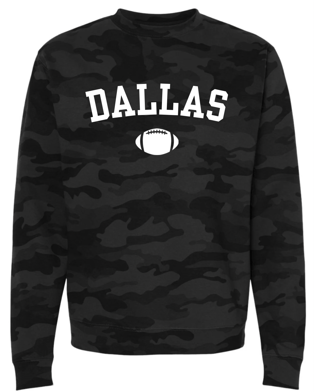 Rep your city in style with our Black Camo Crewneck — the ultimate game day essential. This mid-weight sweatshirt features a sleek black camo pattern and bold city lettering, making it the perfect piece to show off your hometown pride. Whether you’re at the stadium, tailgating, or keeping it casual, the classic crewneck fit is comfortable, durable, and ready for all four quarters.