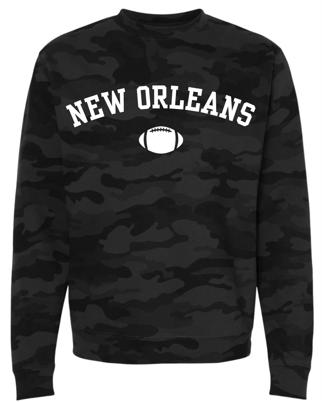 Rep your city in style with our Black Camo Crewneck — the ultimate game day essential. This mid-weight sweatshirt features a sleek black camo pattern and bold city lettering, making it the perfect piece to show off your hometown pride. Whether you’re at the stadium, tailgating, or keeping it casual, the classic crewneck fit is comfortable, durable, and ready for all four quarters.