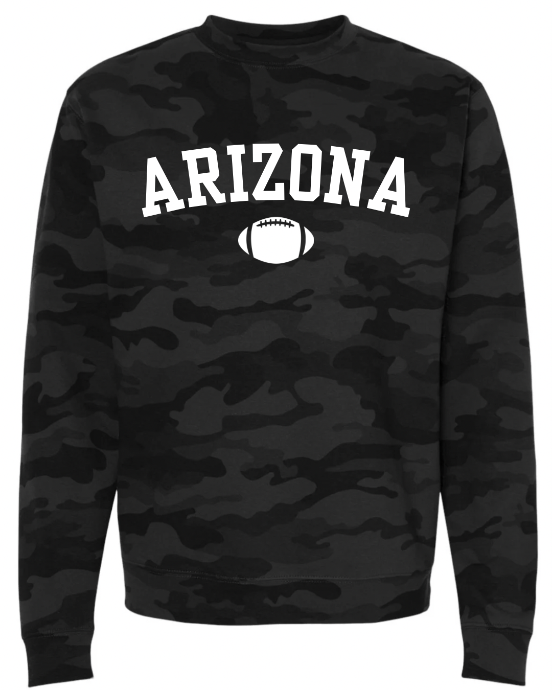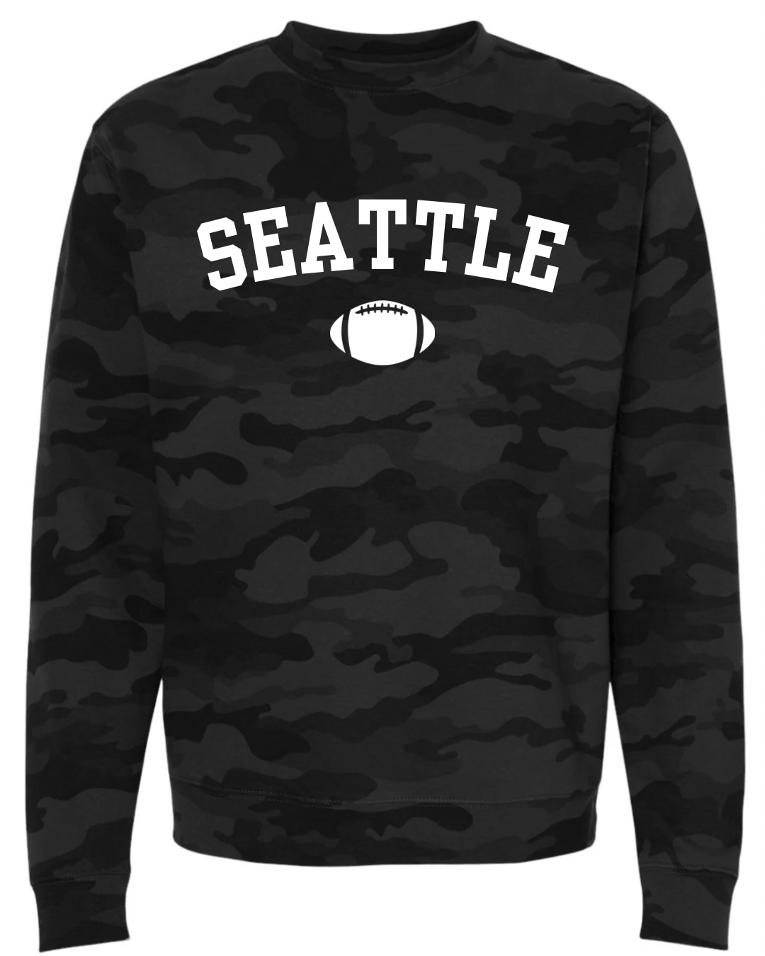 Rep your city in style with our Black Camo Crewneck — the ultimate game day essential. This mid-weight sweatshirt features a sleek black camo pattern and bold city lettering, making it the perfect piece to show off your hometown pride. Whether you’re at the stadium, tailgating, or keeping it casual, the classic crewneck fit is comfortable, durable, and ready for all four quarters.