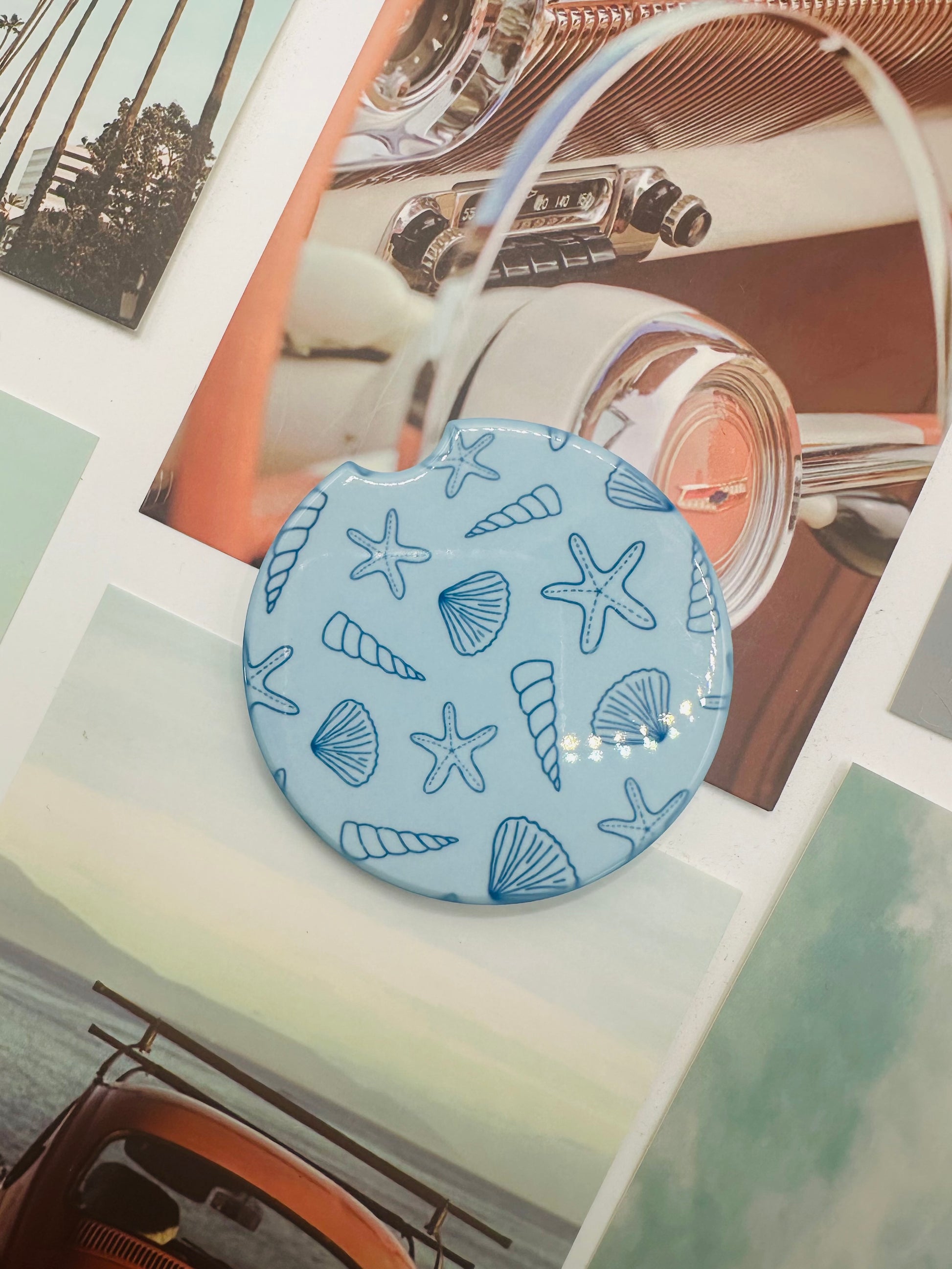 These absorbent coasters fit perfectly in most standard car cup holders to catch drips, spills, and condensation. Made from durable ceramic with a stylish design, they're both functional and fun—just pop them in and enjoy a cleaner, more personalized ride.