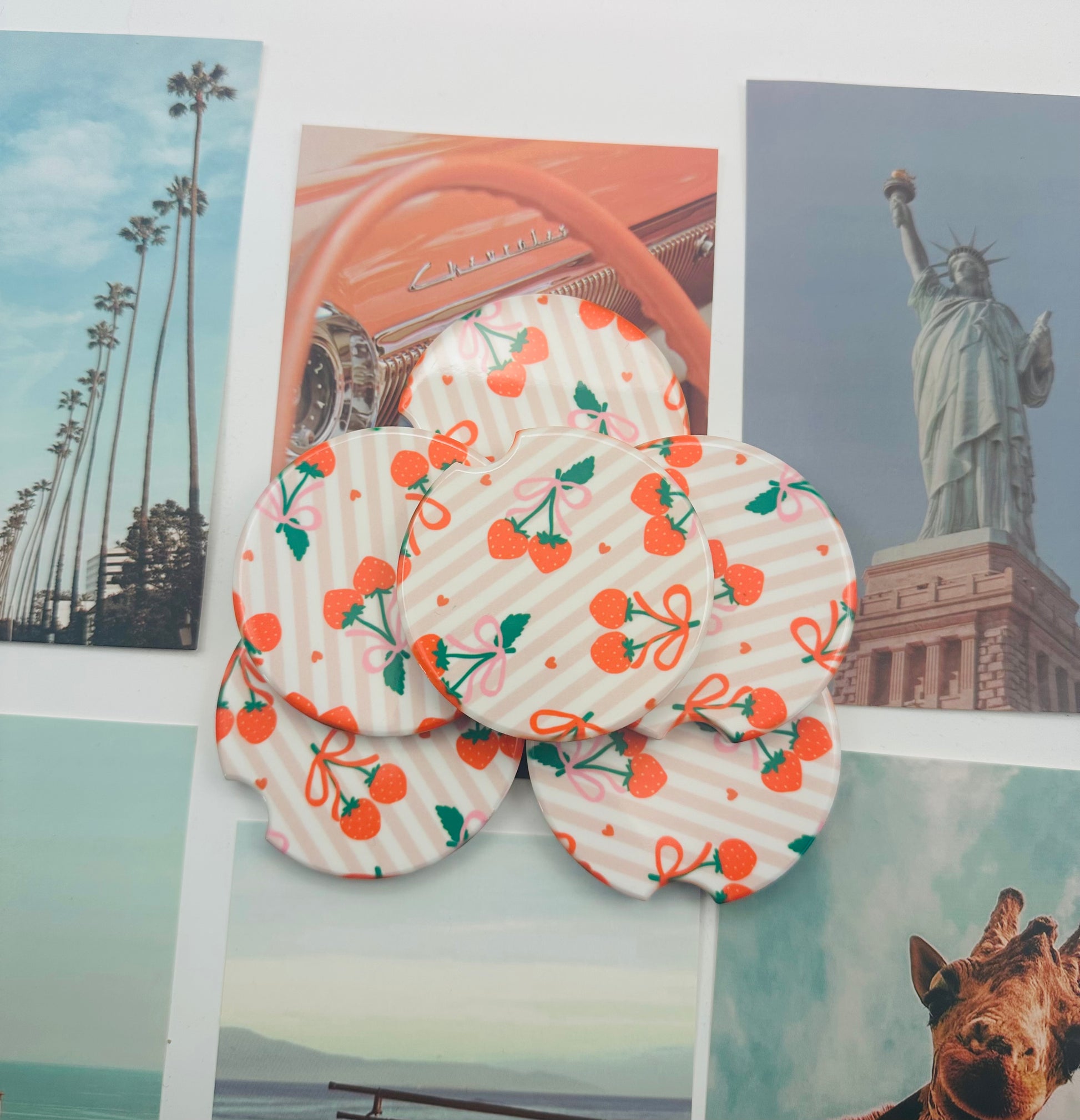 These absorbent coasters fit perfectly in most standard car cup holders to catch drips, spills, and condensation. Made from durable ceramic with a stylish design, they're both functional and fun—just pop them in and enjoy a cleaner, more personalized ride.